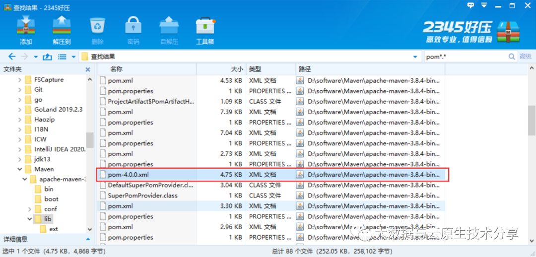 先查找默认的配置,在lib目录下随便找个jar包用解压工具打开-》再回到上层目录-》ctrl+F搜索pom.找到pom-4.0.0.xml-》把这个文件拖出来打开