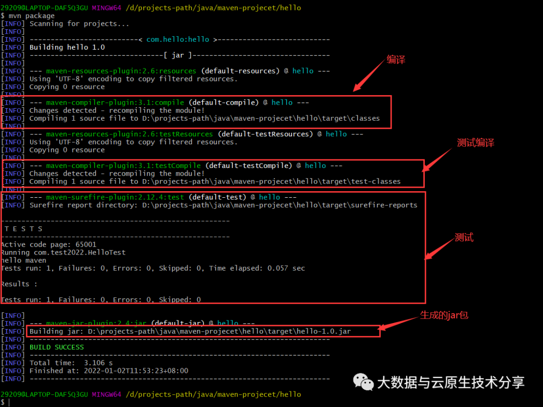 【温馨提示】:像compile、test、test-compile、package、install等,排在它们前面的步骤都会执行。图示如下:
