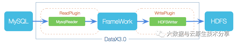 Framework:Framework用于连接reader和writer,作为两者的数据传输通道,并处理缓冲,流控,并发,数据转换等核心技术问题。