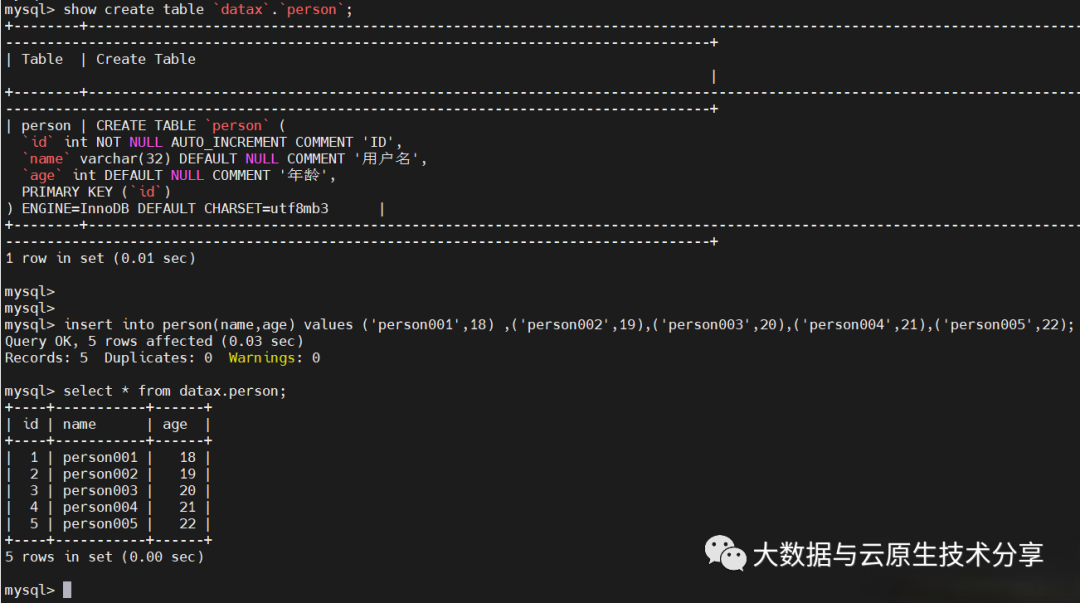 CREATE TABLE IF NOT EXISTS `datax`.`person` (