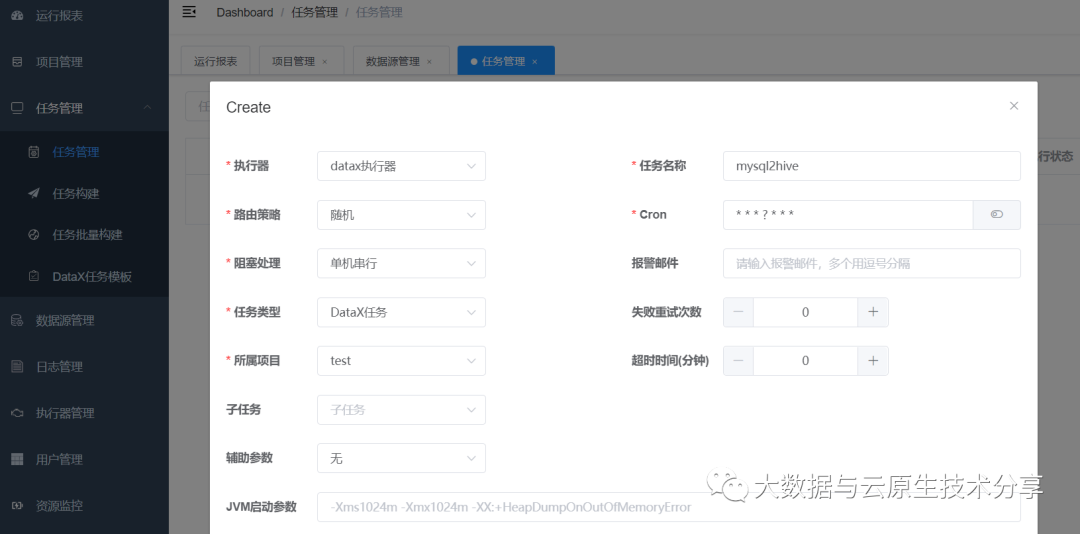 其实知道上面datax命令操作,web端操作就非常简单了,这里只是简单的实现了两个示例,其它的小伙伴也可以试试,也非常简单