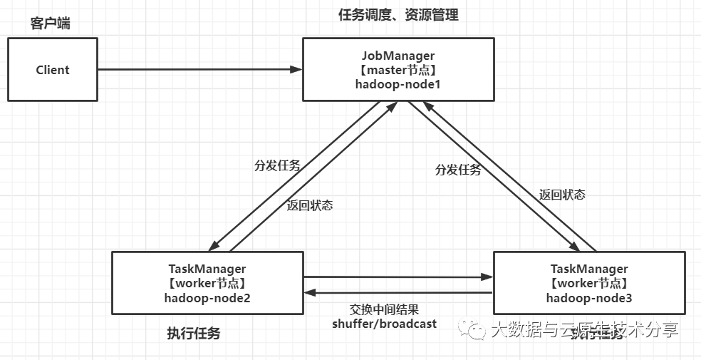 JobManagers:负责申请资源,协调以及控制整个job的执行过程,具体包括,调度任务、处理checkpoint、容错等等。