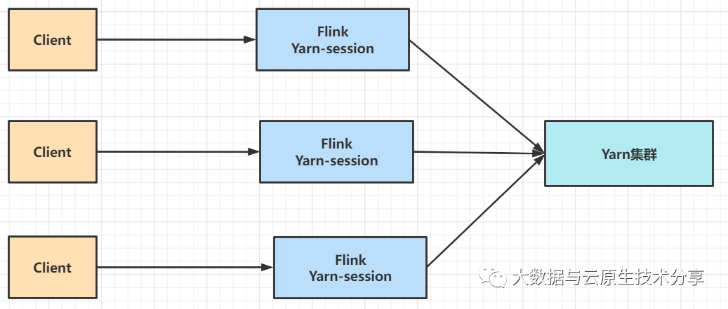 Yarn-cluster模式下,每个任务单独在Yarn上启动一套Flink集群,适合大任务,运行完后结束,集群释放,资源释放,再有任务,会再起新的Flink集群,需要频繁的在Yanr上开启Flink集群,集群相互独立,适合大任务。