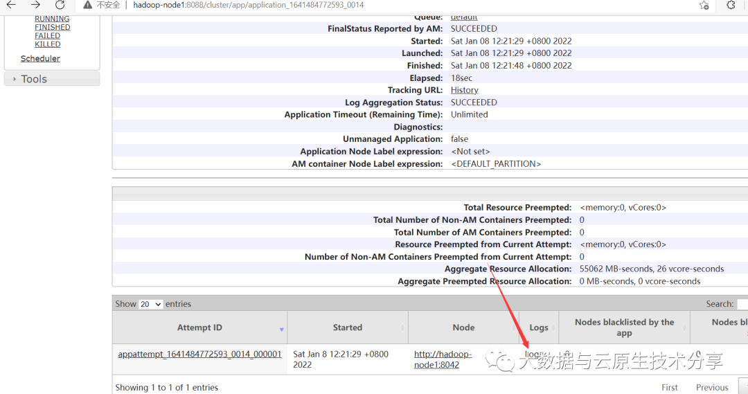 查看正在运行任务的日志,yarn容器退出之后,就下面入口就访问不了了。