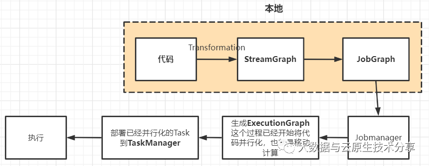 通过执行环境分析并取得逻辑计划,即StreamGraph→JobGraph;