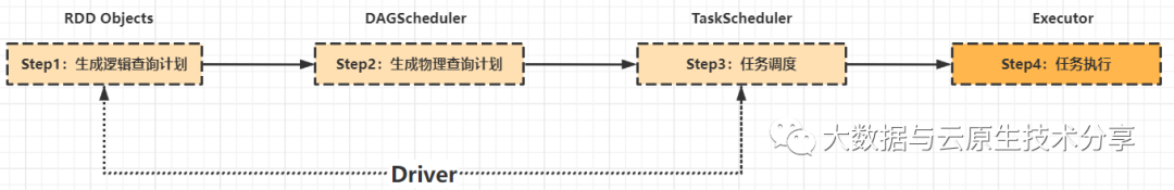 Driver负责生成逻辑查询计划、物理查询计划和把任务派发给executor,executor接受任务后进行处理,离线计算也是按这个流程进行。