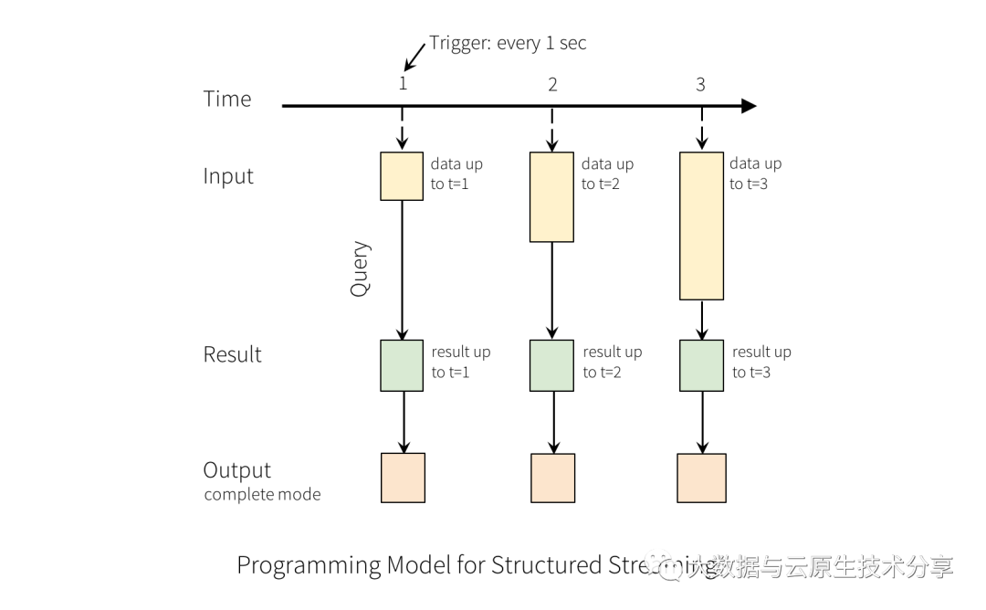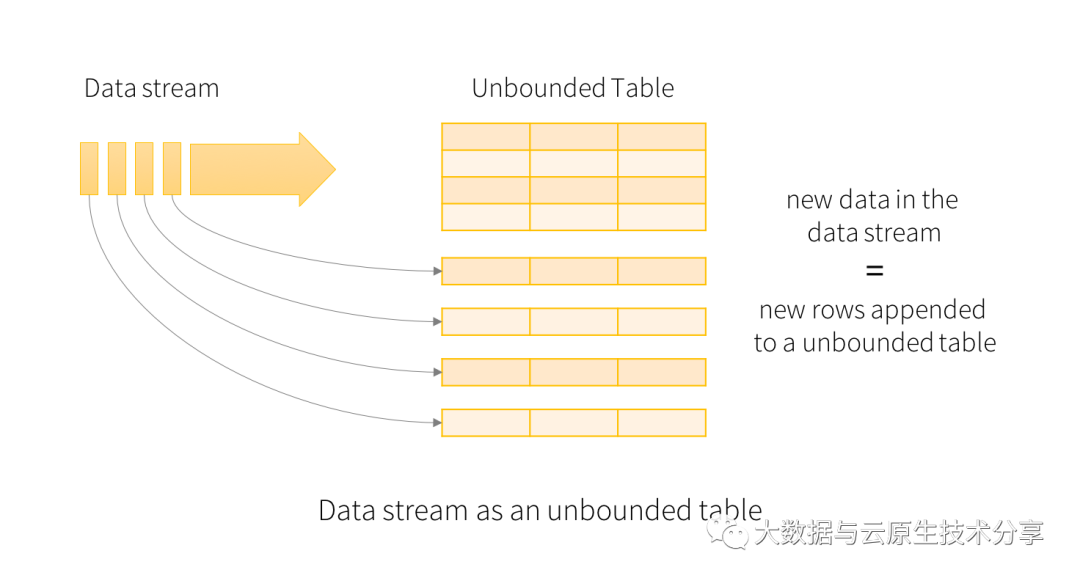 Spark 2.X出来的流框架,采用了无界表的概念,流数据相当于往一个表上不断追加行。