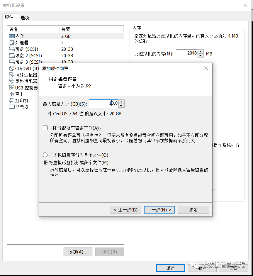 第一步:添加一块10G的硬盘