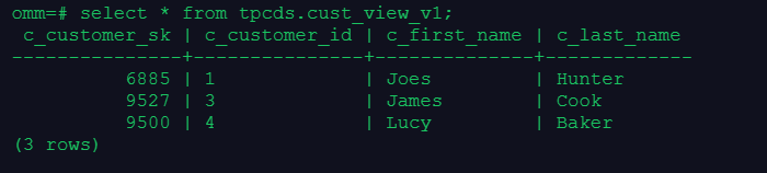 create view new_part as select * from tpcds.cust_view_v1 where c_customer_id=4;