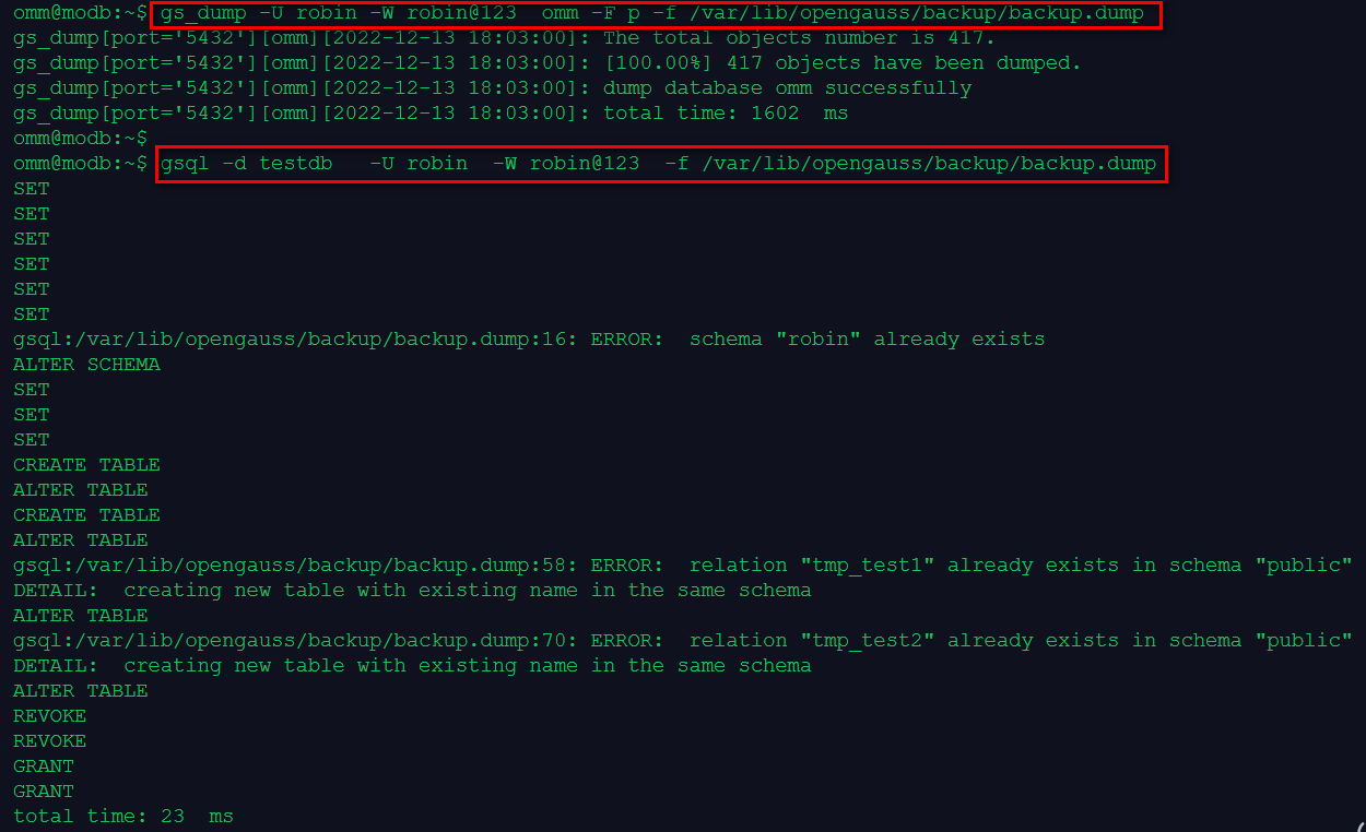 gsql -d testdb -U robin -W robin@123 -f /var/lib/opengauss/backup/backup.dump
