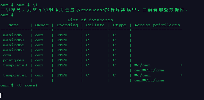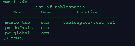 2.执行\db命令,查看openGauss数据库上有哪些表空间: