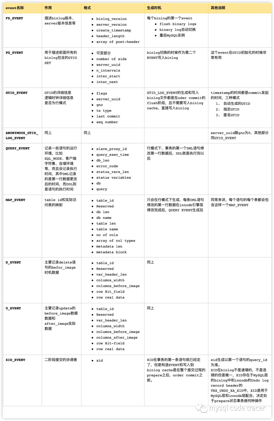 | ANONYMOUS_GTID_LOG_EVENT | 同上 | 同上 | server_uuid跟gno为0,其他部分同GTID_EVENT | |