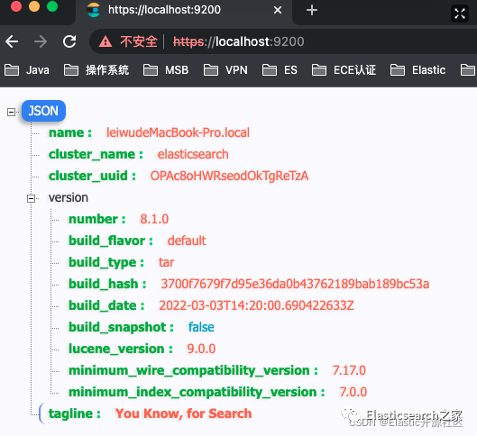 在7.x的版本是通过如下地址访问ES服务:http://localhost:9200/ 但是在 8.x 的版本访问会看到如下页面: