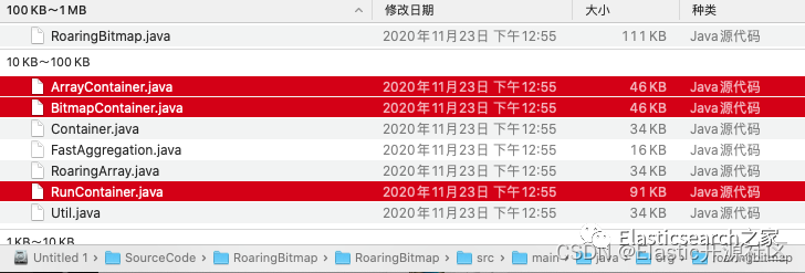 第三种Container叫RunContainer,这种类型是Lucene 5之后新增的类型,主要应用在连续数字的存储商,比如倒排表中存储的数组为 [1,2,3...100W] 这样的连续数组,如果使用RunContainer,只需存储开头和结尾两个数字:1和100W,即占用8个字节。这种存储方式的优缺点都很明显,它严重收到数字连续性的影响,连续的数字越多,它存储的效率就越高。