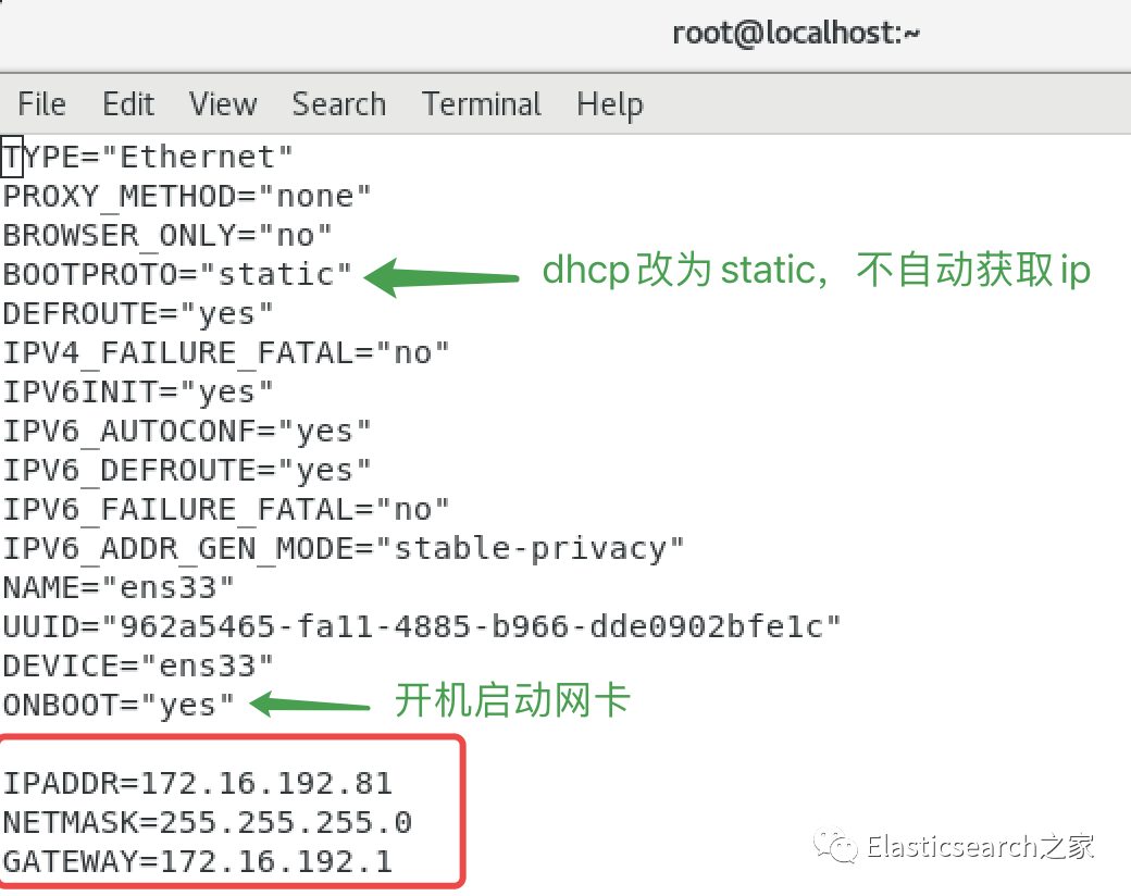vi /etc/sysconfig/network-scripts/ifcfg-ens33