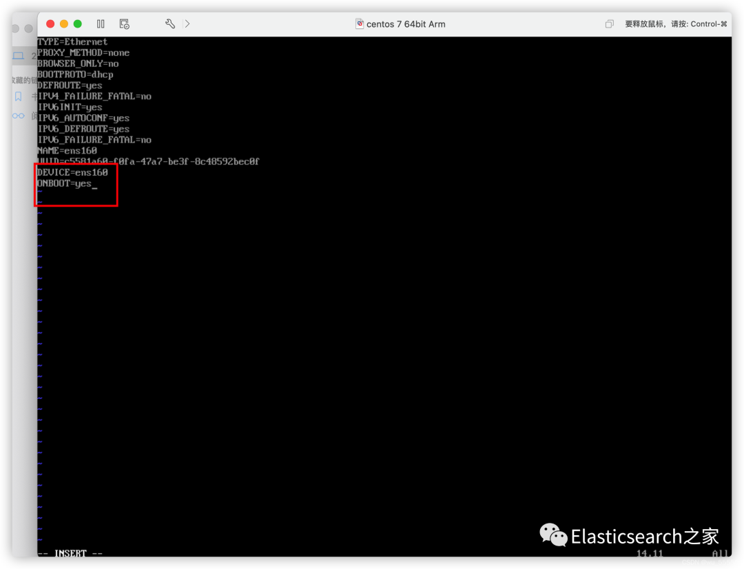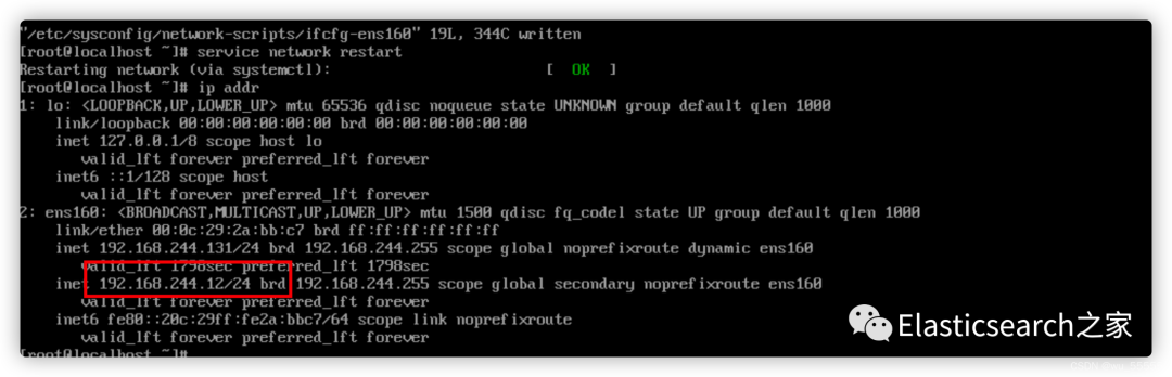 # 之前安装都是ens33,这个版本是ens160。如果没有安装vim的话,可以使用vi命令替代vim /etc/sysconfig/network-scripts/ifcfg-ens160