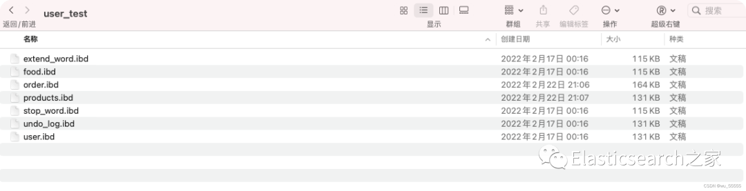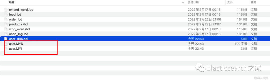 然后查看文件,我们发现user表的数据库文件变成了两个,一个.MYD