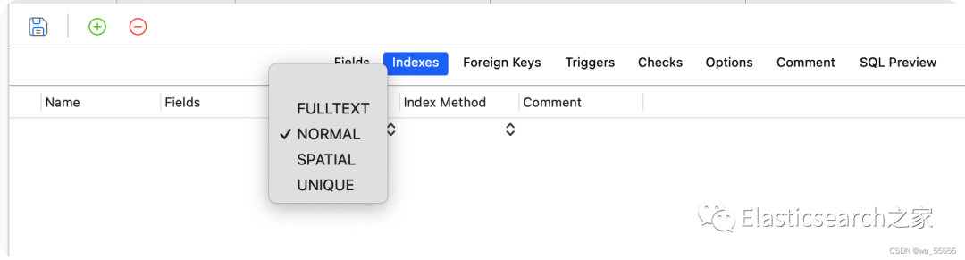 在利用navicat等数据库管理工具创建索引时也可以看到其索引类型
