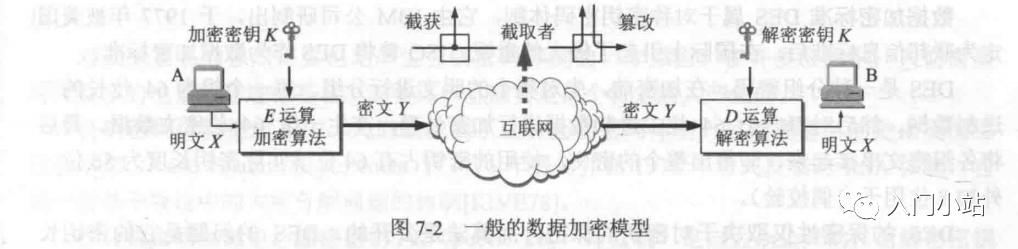 接收端利用解密算法 D 运算和解密密钥 K,解出明文 X