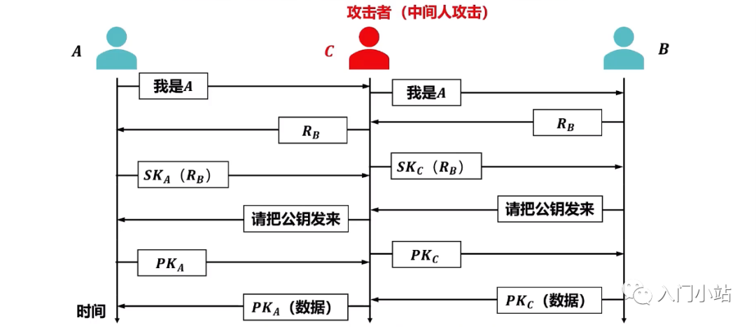 在使用公钥密码体制在实现实体鉴别时,仍有受到攻击的可能。