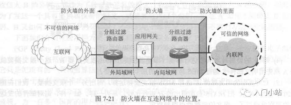 防火墙是一种特殊编程的路由器,安装在一个网点和网络的其余部分之间,目的是实施访问控制策略。