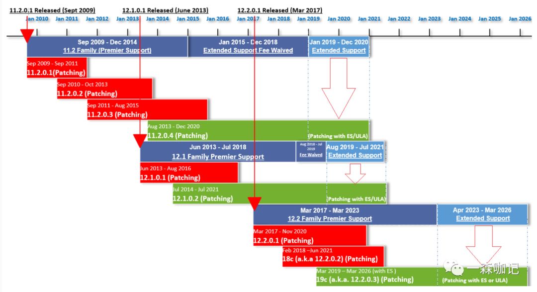 如果大家要升级Oracle版本,单从Oracle可提供的服务生命周期一项考虑,建议推荐使用12.2或者直接搞到19c版本。