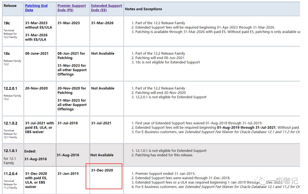1. 11.2.0.4 的Extended Support Ends (ES)的截止时间:31-Dec-2020;