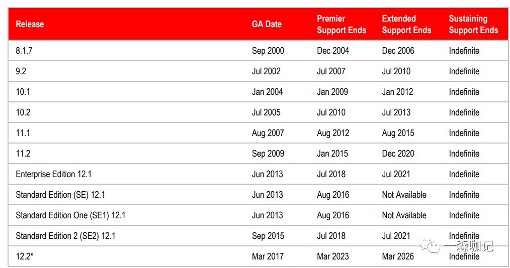 2. 12.2.0.1 Release Family 12.2 的Lifetime Support的Extended Support Ends的截止时间为:Mar 2026;