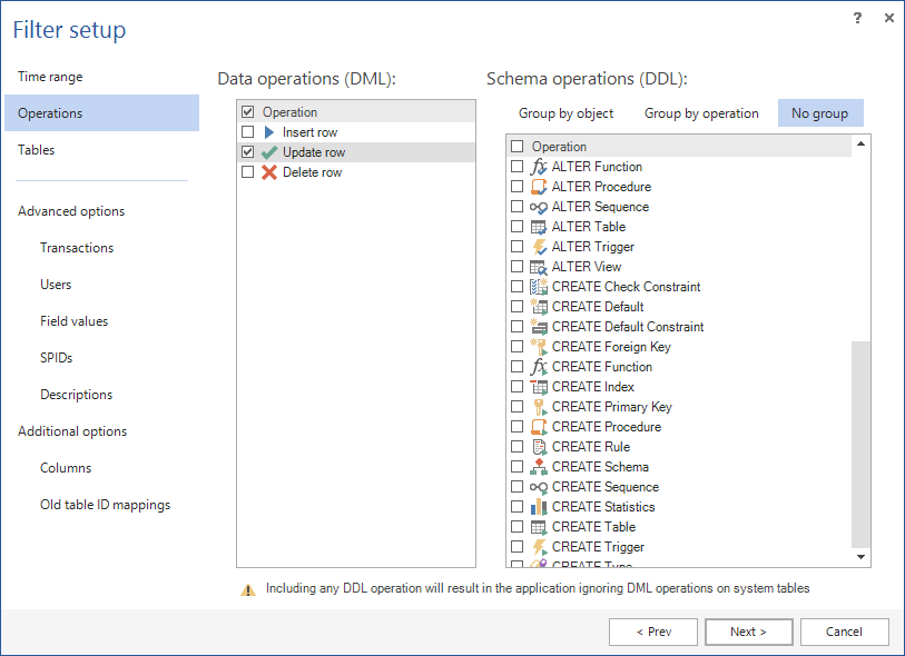 3、在过滤设置选项步骤中选择更新行,操作选项卡