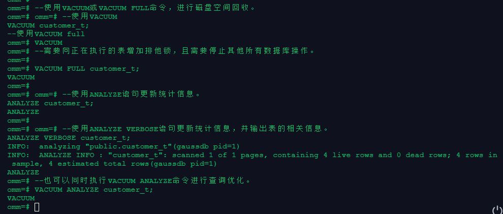 5、对表进行VACUUM、VACUUM FULL和ANALYZE操作