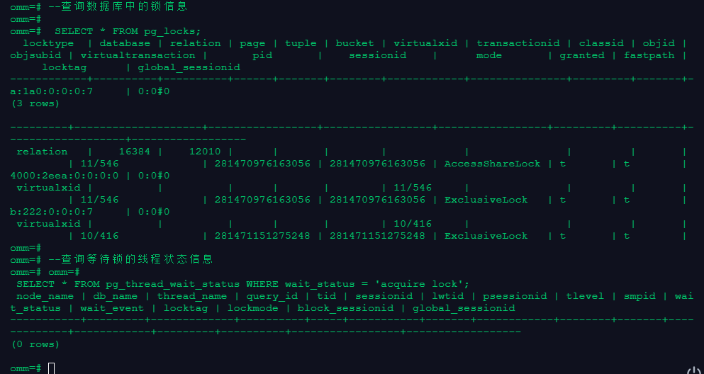 SELECT * FROM pg_thread_wait_status WHERE wait_status = 'acquire lock';