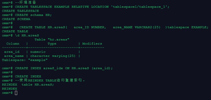 REINDEX table HR.areaS;
