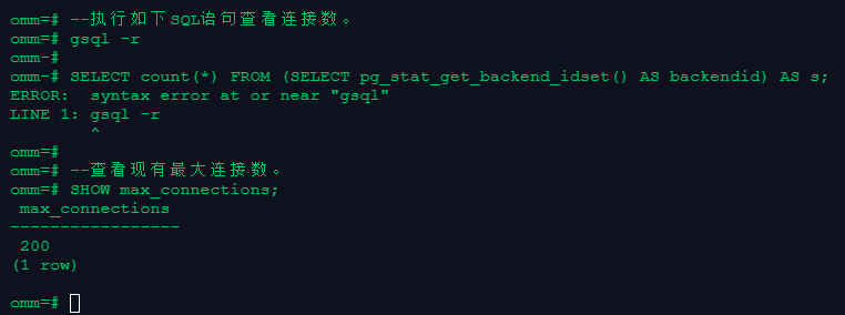 --查看现有最大连接数。