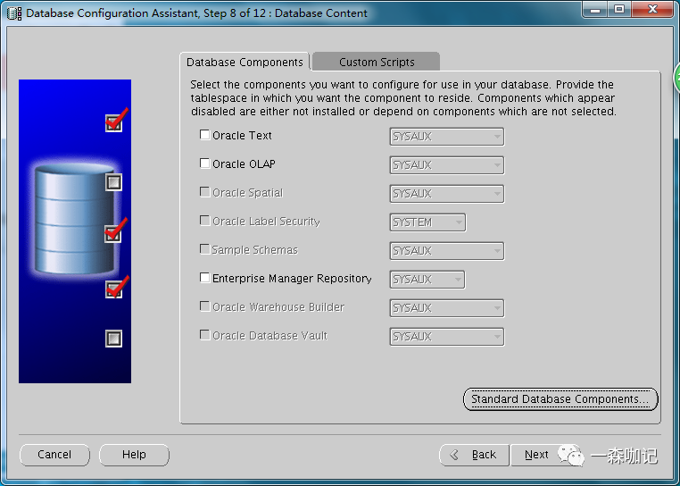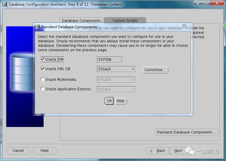 在Standard Database Components 选择JVM和XML DB,其它不勾选。
