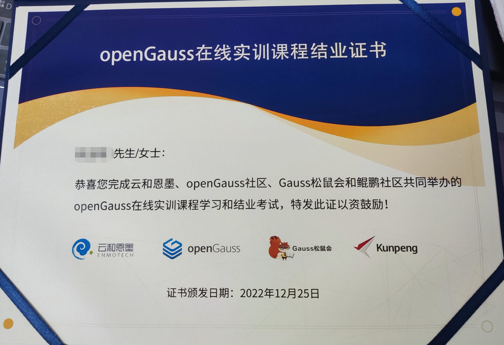 我在这段时间里,先后参加了OGCA证书的培训考核,并最终通过了考试,拿到了证书,之后又参加了21天训练营活动,并顺利通过结营考试,也拿到了证书,哈哈哈仪式感满满啊,总的来说,这两个活动“一文一武”,理论知识+实操练习,让我觉得收获匪浅,感谢老师及工作人员的付出,也希望openGauss能发展越来越好,多办活动,我还会再回来的哈哈哈!!!