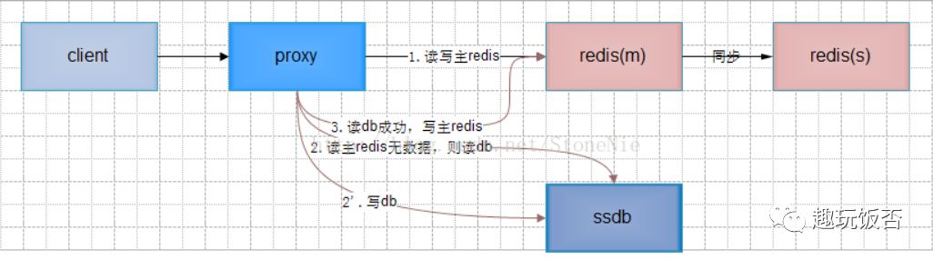 1) 写操作时proxy先正常写主redis,再同步或异步写ssdb;
