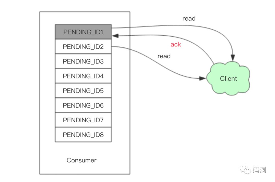 ,它记录了当前已经被客户端读取的消息,但是还没有ack。如果客户端没有ack,这个变量里面的消息ID会越来越多,一旦某个消息被ack,它就开始减少。这个pending_ids变量在Redis官方被称之为PEL