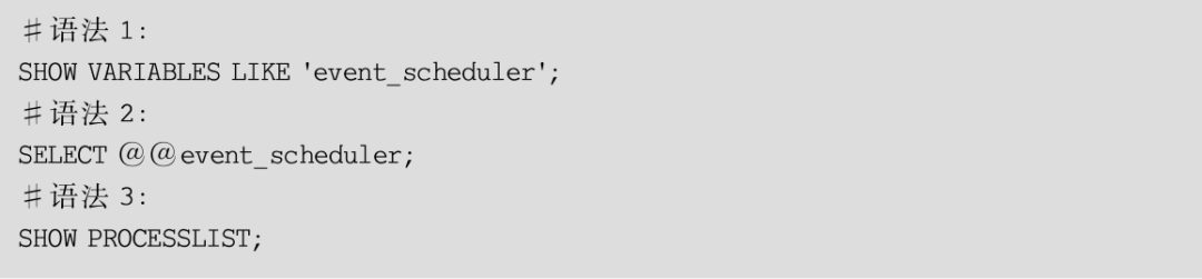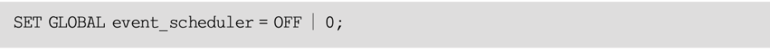 可以通过对全局变量event_scheduler的查看,掌握事件调度器的状态,其值为OFF表示关闭,其值为ON表示开启。