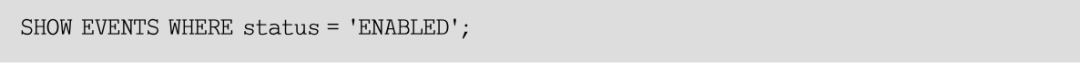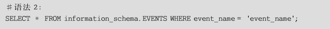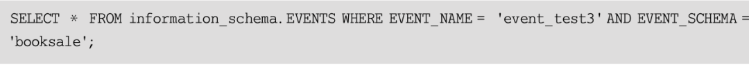 以上命令没有限定数据库,所以查看的是当前服务器中所有名为event_name的事件,要查看指定数据库,需要添加条件EVENT_SCHEMA=' db_name'。