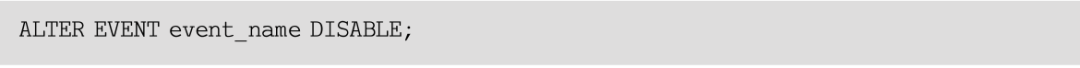 语法说明:event_name是禁用事件的名称。事件默认属于当前数据库,也可使用db_name.event_name禁用指定数据库中的事件。
