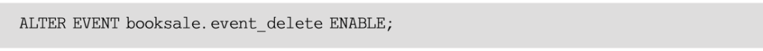 【例9-32】启用图书销售数据库booksale中名为event_delete的事件。