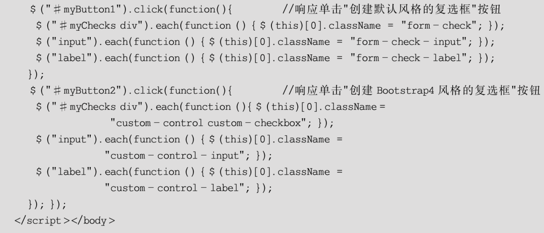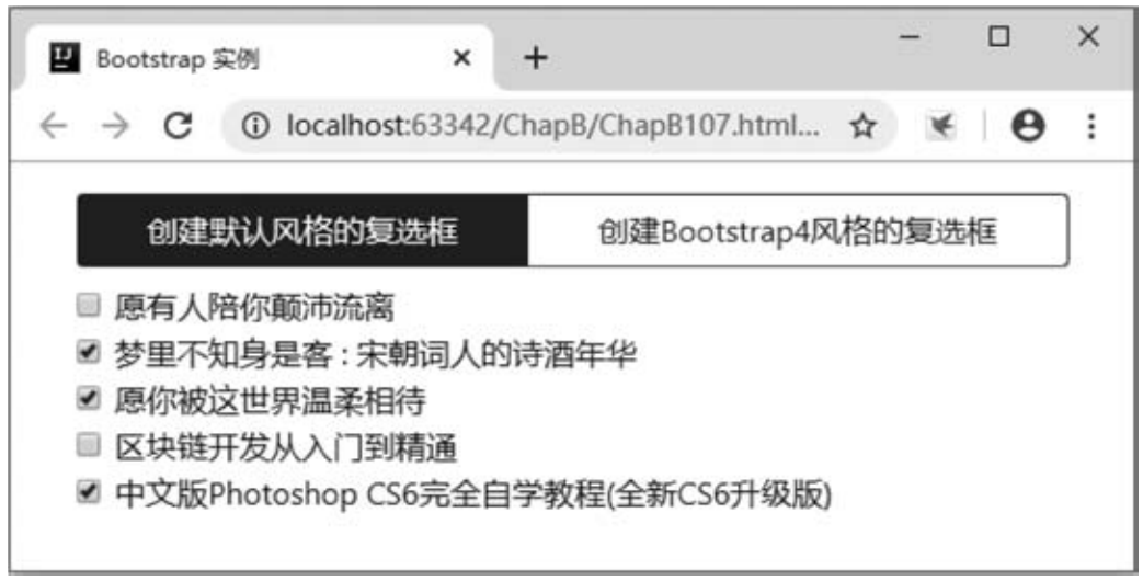 单击“创建Bootstrap4风格的复选框”按钮,则Bootstrap4风格的复选框效果如图2所示。