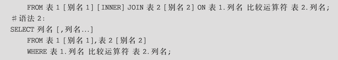 内连接有两种语法格式,分别是:在FROM子句中定义连接、在WHERE子句中定义连接。