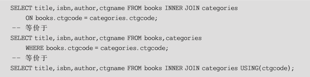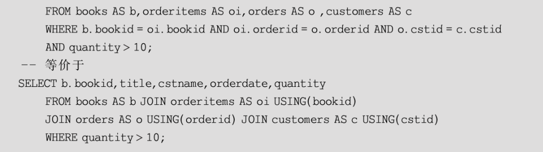 如果要连接的表的连接条件中列名是同名,可以将ON条件换成USING()子句;