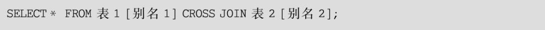 交叉连接是在没有WHERE子句的情况下,被连接的两个表中所有数据行的笛卡儿积。两个表进行交叉连接时,结果集大小为两个表数据行之积,数据列之和。交叉连接在实际应用中极少使用。交叉连接查询的基本语法格式如下所示。