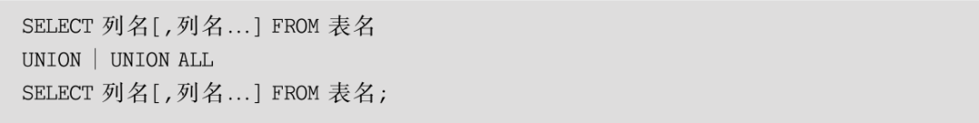 在MySQL中可以通过UNION关键字将两个同结构的数据表进行合并。合并查询的基本语法格式如下所示。