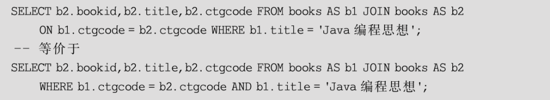 自连接是一个表和其自身进行连接,就是同一个表在FROM子句中出现两次。这是一种特殊的等值连接,也是一种特殊的内连接。为了区分,必须对表指定不同的别名,列名前也要加上表的别名进行区分。自连接查询的基本语法格式如下所示。