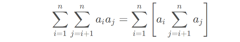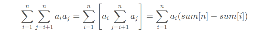 #include<bits/stdc++.h>using namespace std;typedef long long ll;const int maxn = 2e5 + 10;ll a[maxn], sum[maxn];int main(){int n;ll ans = 0;cin >> n;for(int i = 1; i <= n; i++) ///预处理前缀和cin >> a[i], sum[i] = sum[i - 1] + a[i];for(int i = 1; i <= n; i++) ///求和即可ans += a[i] * (sum[n] - sum[i]);cout<<ans<<endl;return 0;}