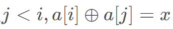 题意:给定数组a和整数x,m次询问,每次询问区间[l ,r ]是否存在两个数字使得异或值等于x。