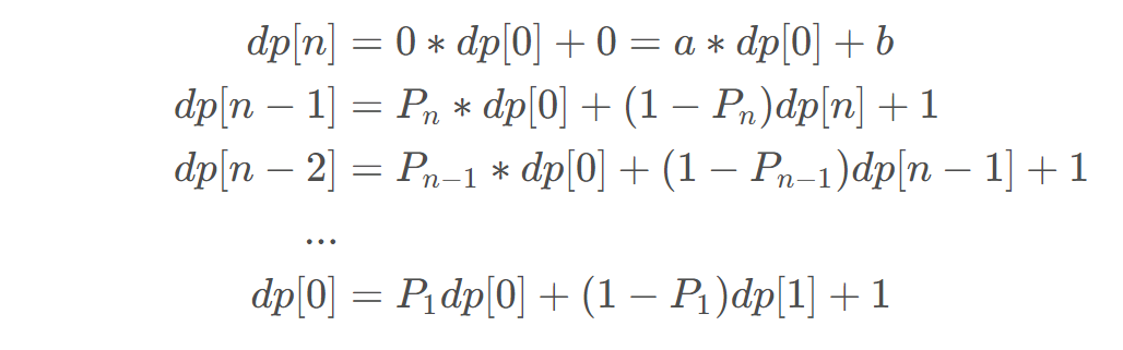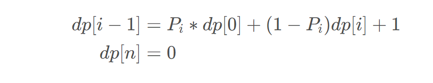 表示从高度i -1出发到顶部花费的期望时间。根据题意可以得到如下的状态转移方程:
